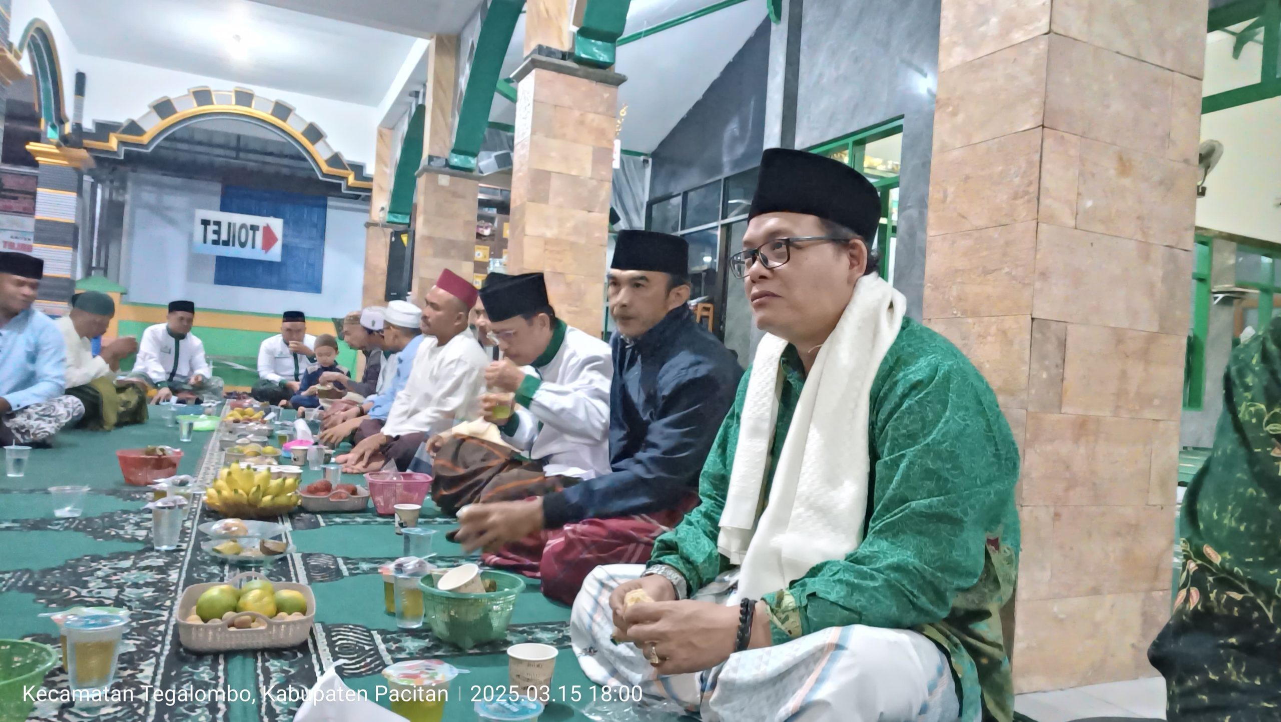 Suasana hangat dan penuh keakraban menyambut kedatangan tim Safari PCNU. Ketua MWCNU Tegalombo, Kyai Slamet Riyadi, bersama jajaran Pemerintah Desa Gemaharjo, menyambut langsung rombongan. Sebelum waktu berbuka tiba, jamaah bersama-sama mengaji kitab, menciptakan suasana khusyuk dan penuh berkah.