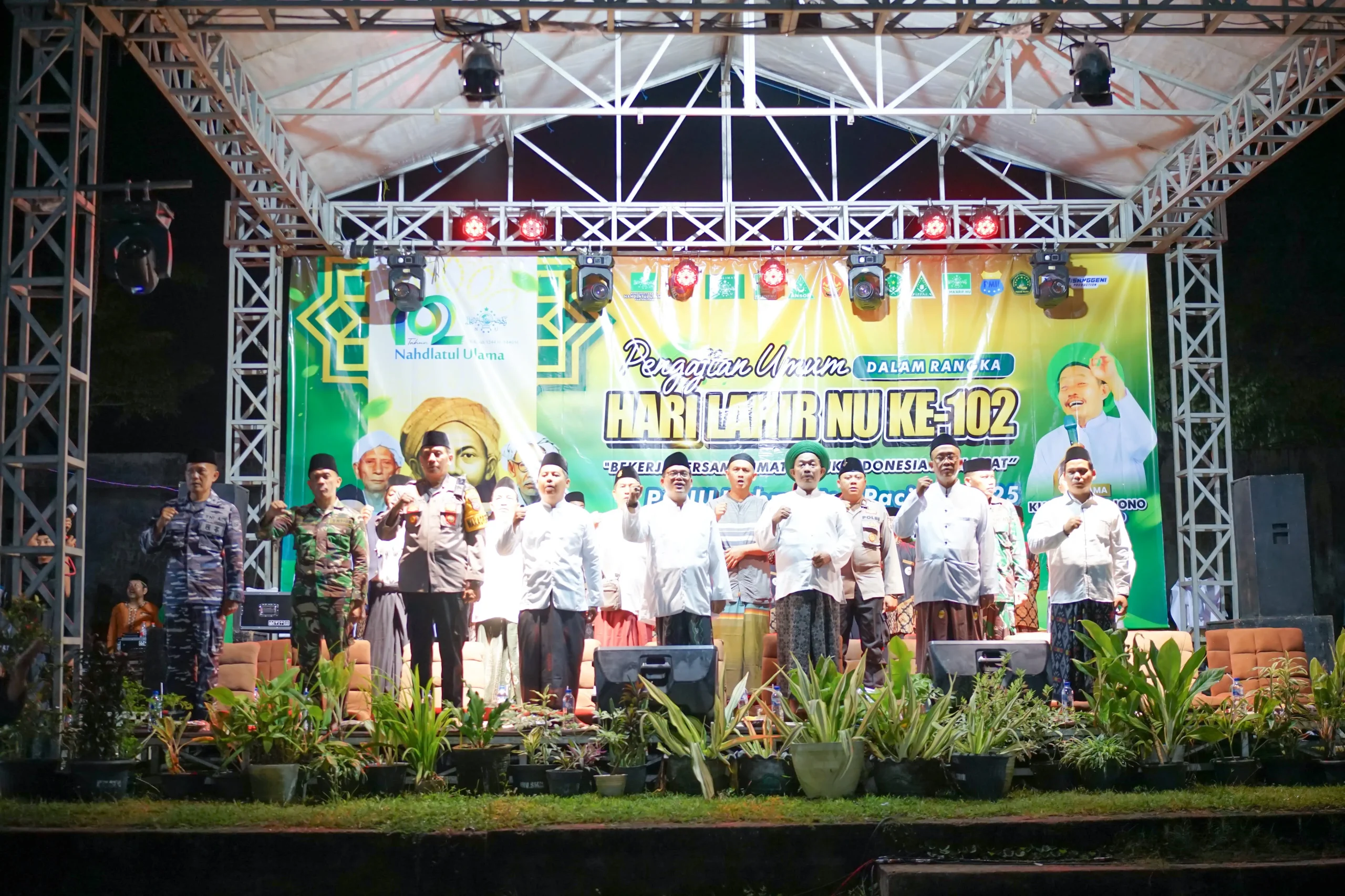Pacitan – Pengurus Cabang Nahdlatul Ulama Pacitan menggelar tasyakuran Hari Lahir (Harlah) Nahdlatul Ulama (NU) ke-102 pada Selasa, 12 Februari 2025. Acara yang berlangsung di lapangan Citra Mandiri Kecamatan Arjosari ini dihadiri oleh ribuan jamaah dari berbagai penjuru Pacitan.