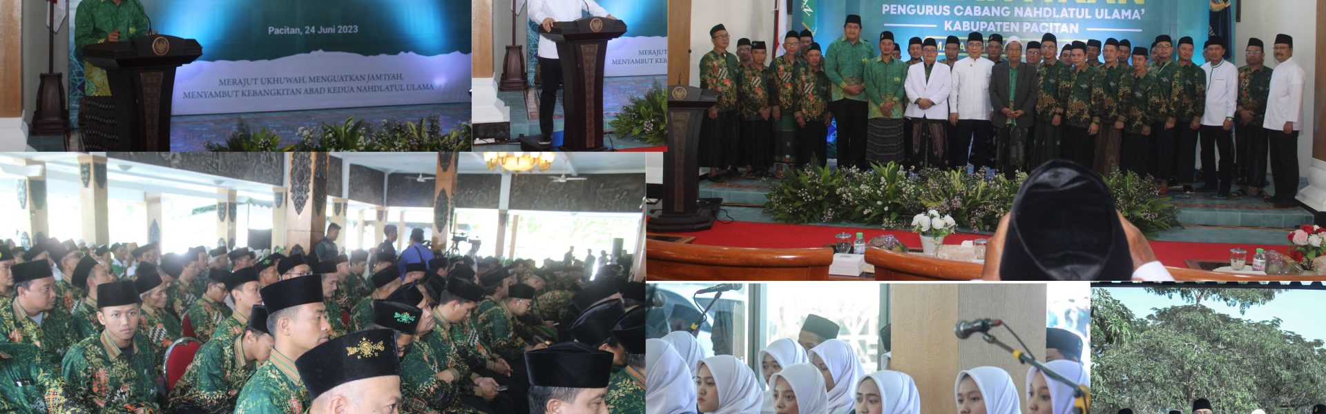 Prosesi pelantikan PCNU Kab. Pacitan oleh Ketua Umum PBNU, K.H. Yahya Cholil Staquf, bersama sekretaris umum, bendahara umum. Dihari oleh Bupati Pacitan, para Kepala Dinas, tokoh agama dan utusan-utusan PCNU se-Mataraman.