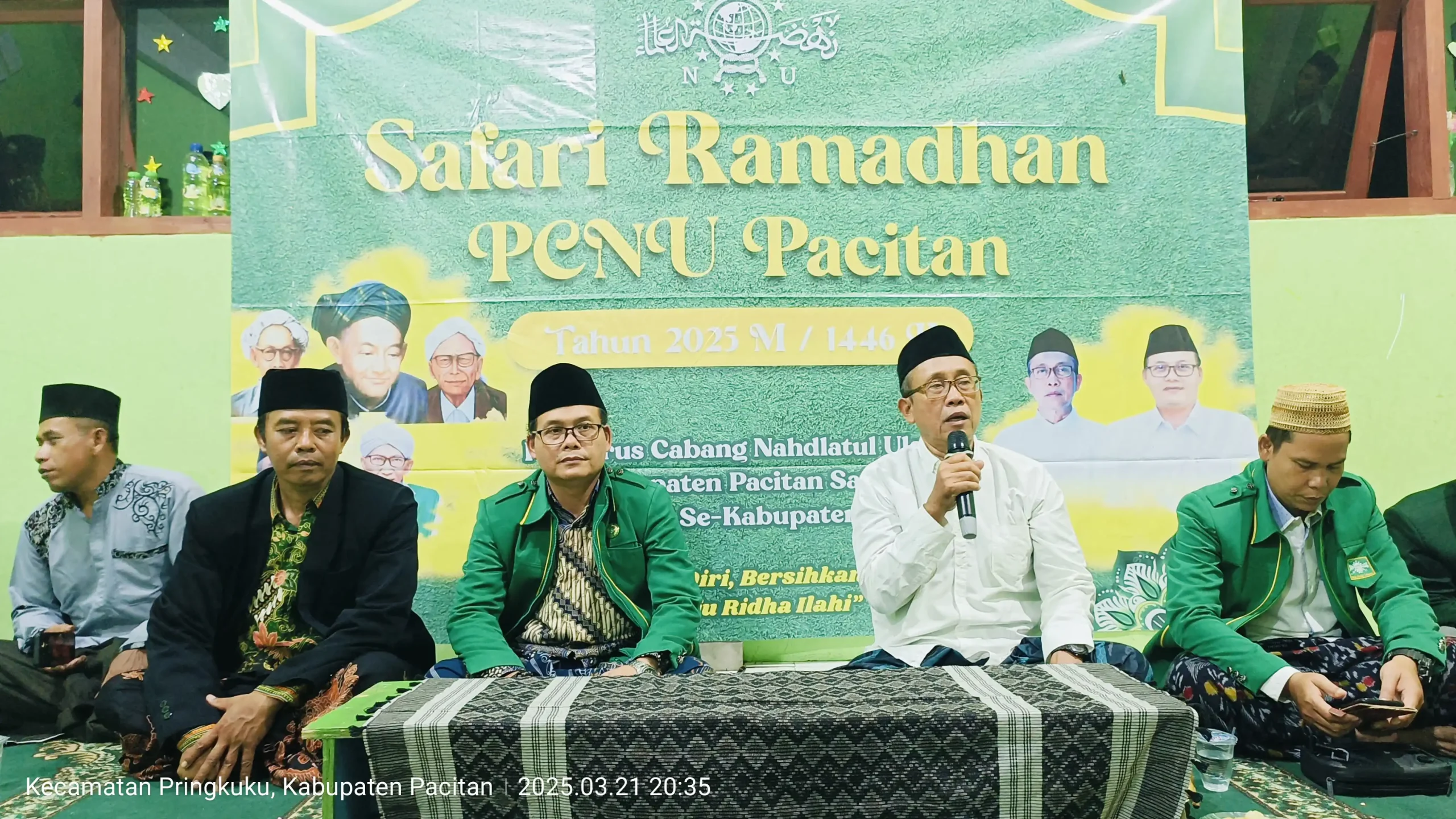 PRINGKUKU–Pengurus Cabang Nahdlatul Ulama (PCNU) Pacitan menggelar Safari Ramadhan di MWCNU Pringkuku pada tanggal 21 Maret 2025, bertepatan dengan malam ke-22 Ramadhan 1446 H. Acara yang bertempat di aula Yayasan Darul Huda ini berlangsung dengan penuh khidmat dan dihadiri oleh ratusan warga nahdliyin, tokoh masyarakat, santri, kepala desa, perangkat desa, ketua KUA, tokoh agama, dan masyarakat sekitar.